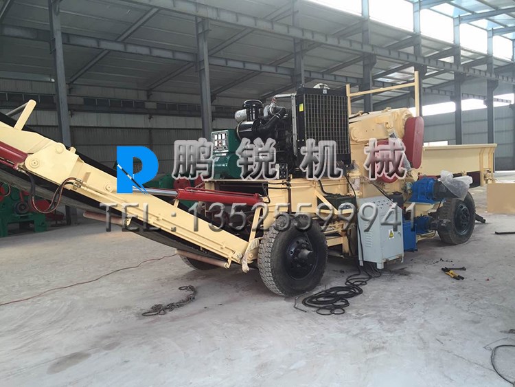 移動式鼓式木材削片機是采用柴油機和發電機相互配合的動力源,解決了大型設備移動難得問題,該移動鼓式削片機可以隨意移動,現場工作。鼓式削片機刀輥上安裝二把或三把、四把飛刀,用專門制造的飛刀螺栓,通過壓刀塊,把飛刀固定在刀輥上。根據被切削原料不同的厚度,上喂料輥總成可以借助液壓系統在一定范圍內上下浮動。切削下來的合格片料通過篩網孔落下,由底部排出,大的片料在機內再行切削。