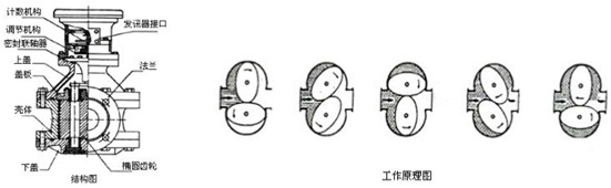二、橢圓齒輪流量計(jì)工作原理: