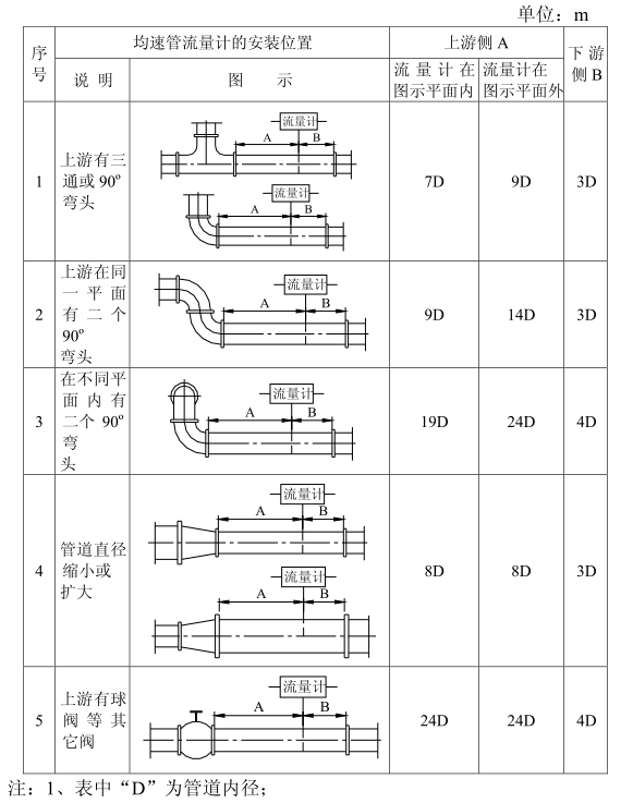 阿牛巴(均速管)流量計(jì)安裝對(duì)上、下游側(cè)必要的直管段長(zhǎng)度要求說明: