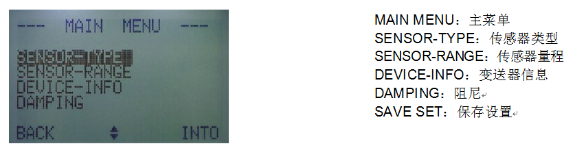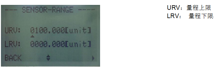 按鈕進(jìn)入 SENSOR-RANGE(傳感器量程)子菜單,設(shè)定傳感器量程。