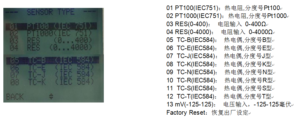 按鈕進(jìn)入 SENSOR-TYPE(傳感器類型)子菜單,按