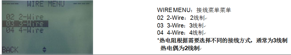 按鈕進(jìn)入WIRE MENU(接線菜單)子菜單,按