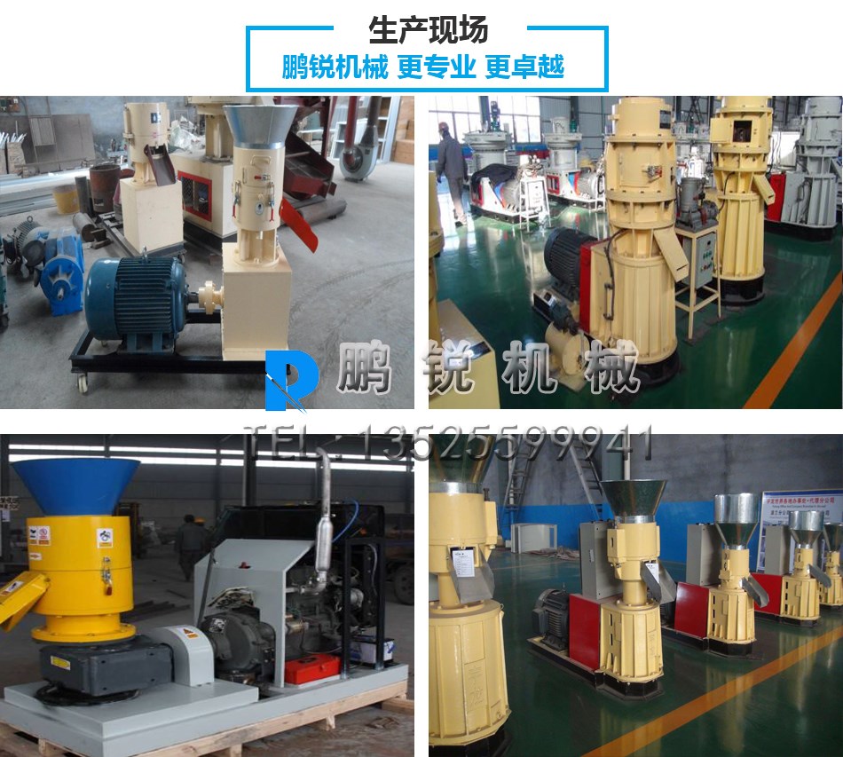 平模顆粒機型采用皮帶及蝸輪蝸桿兩級傳動,轉動平穩、噪聲低、喂料依靠物料自身的重力,避免堵塞、主軸的轉速約為60rpm,壓輥的線速度約為2.5m/s,可有效去除物料中的氣體,增加了產品的緊密程度。